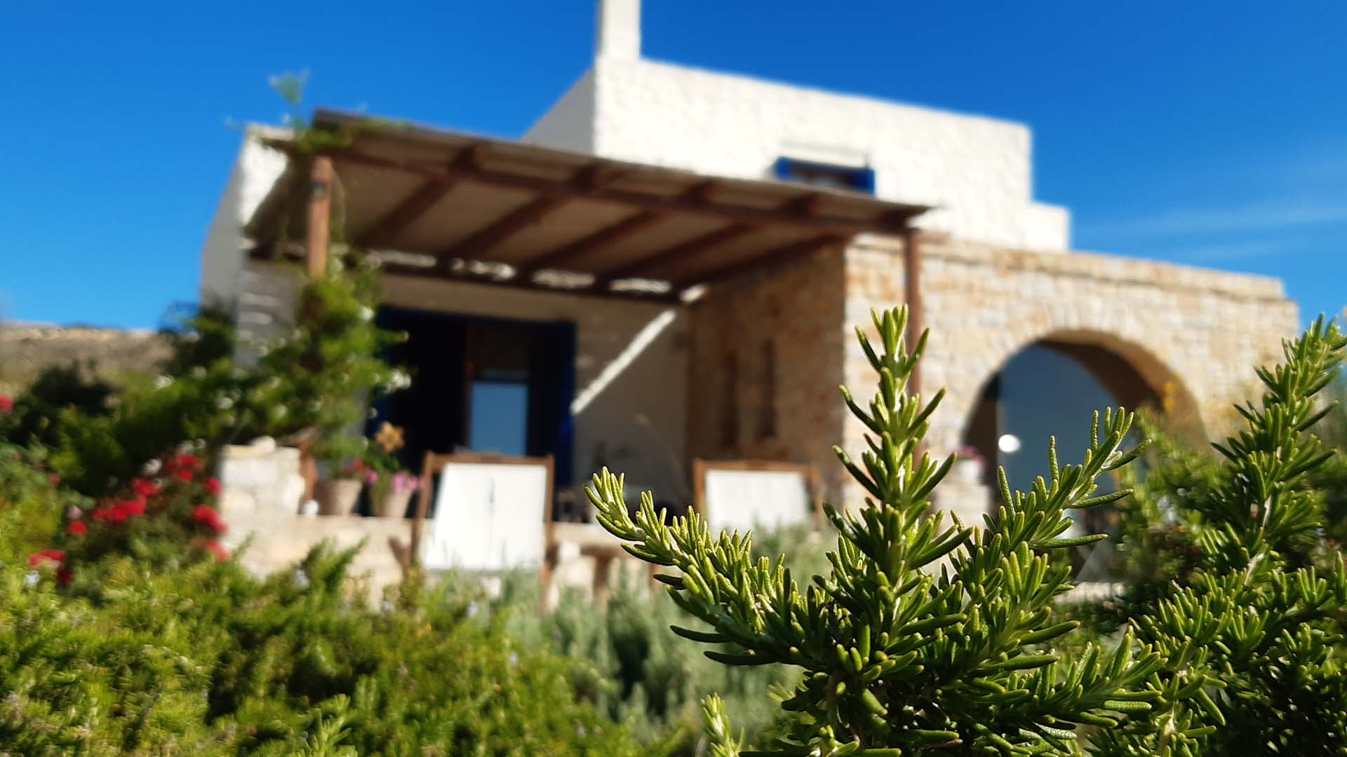 The 2000 m2 estate has a private vineyard, οlive, and fruit trees, a variety of herbs like oregano, rosemary, sage, thyme, a vegetable garden and a unique activity park with traditional and natural toys and games. The villas are surrounded by beautiful Mediterranean gardens designed to blend in the natural environment.