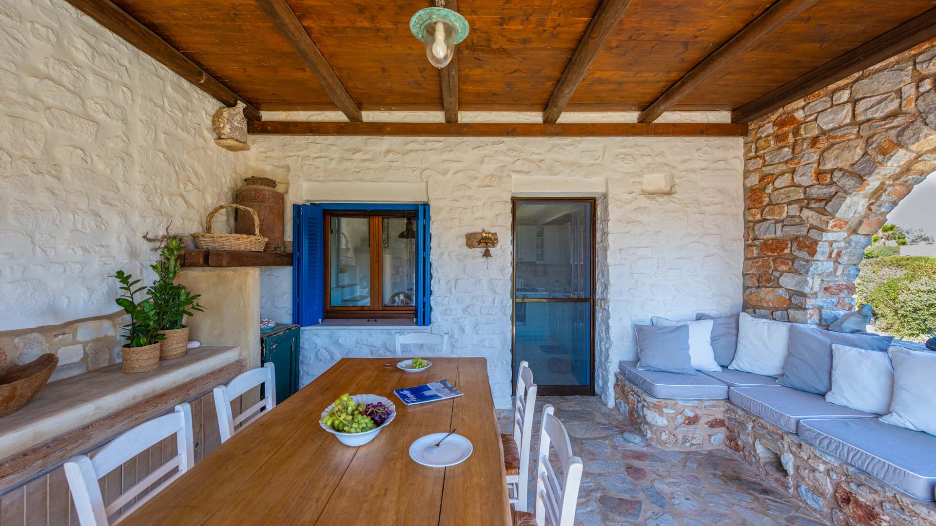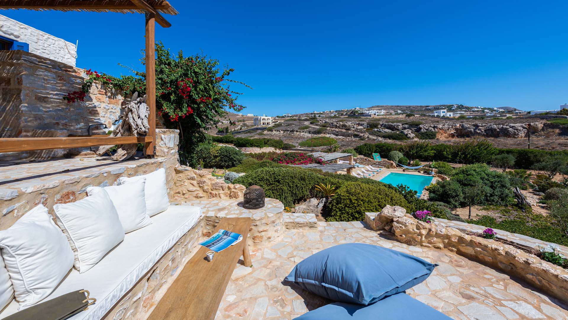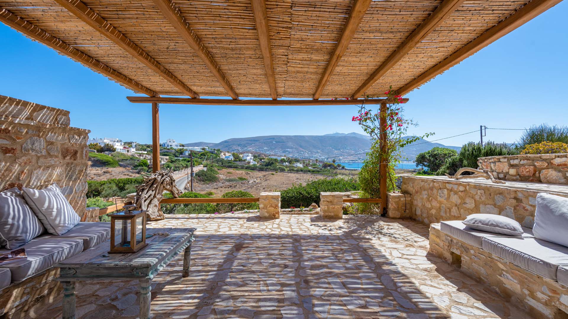 Blue villa has three spacious terraces with unique panoramic sea view overlooking Parikias bay.