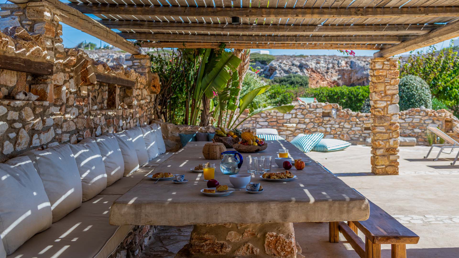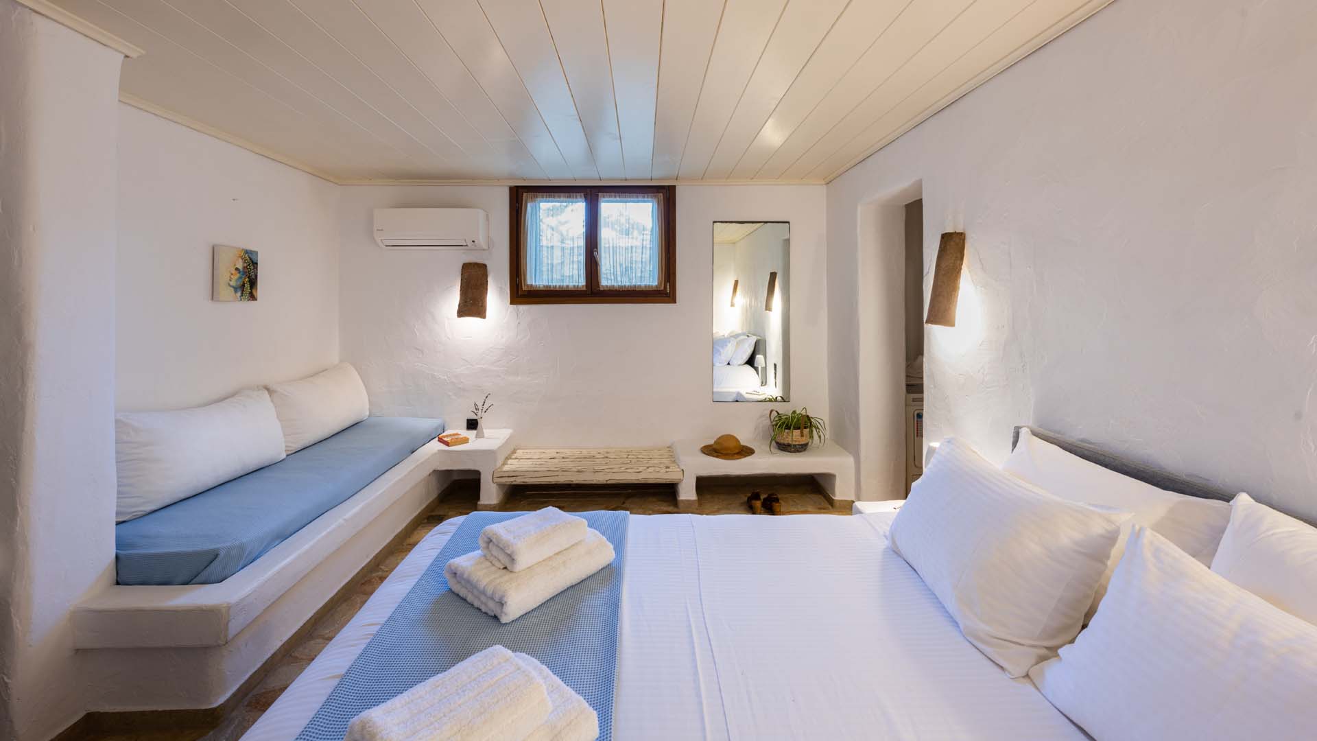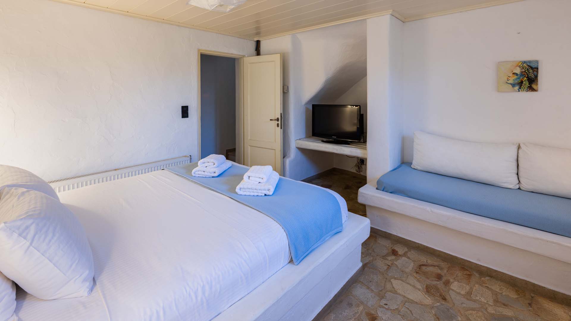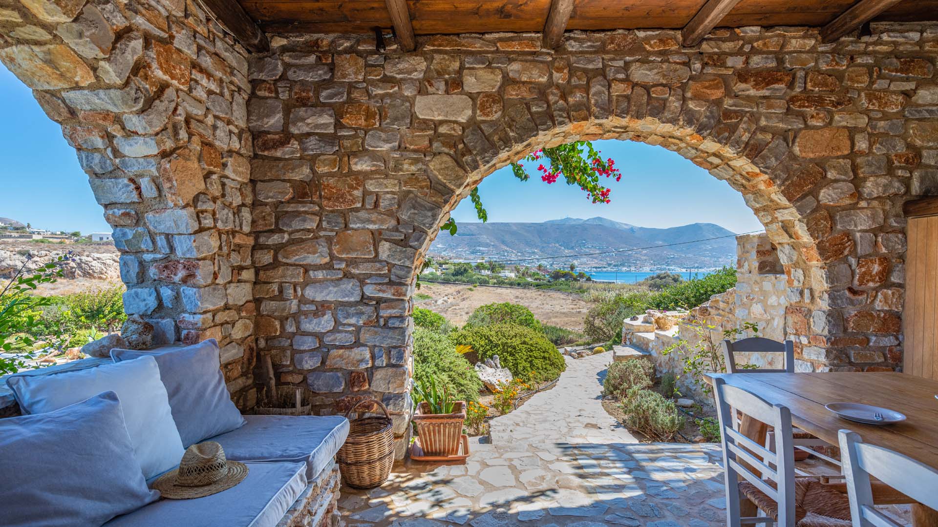 Blue villa has three spacious terraces with unique panoramic sea view overlooking Parikias bay.