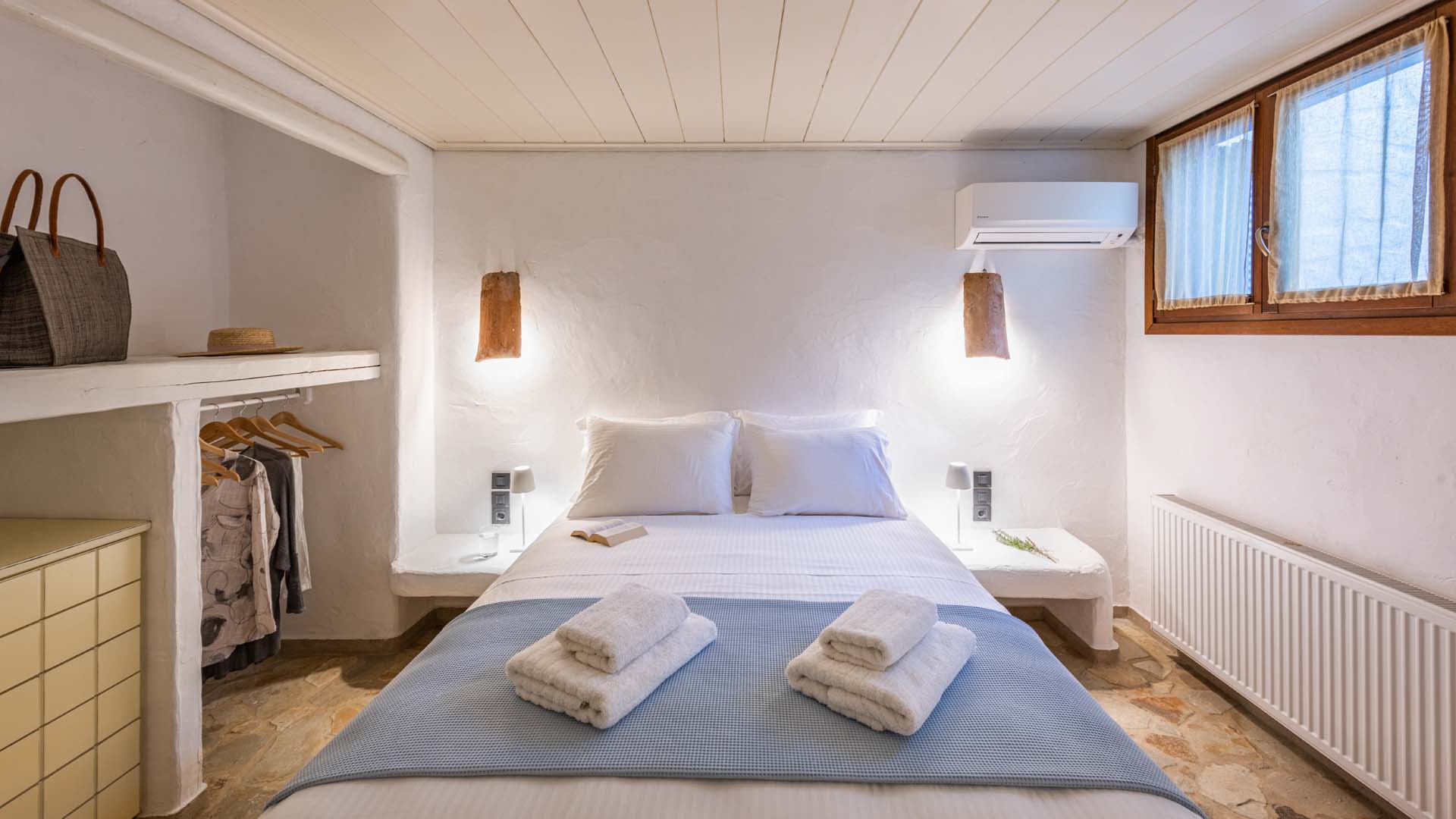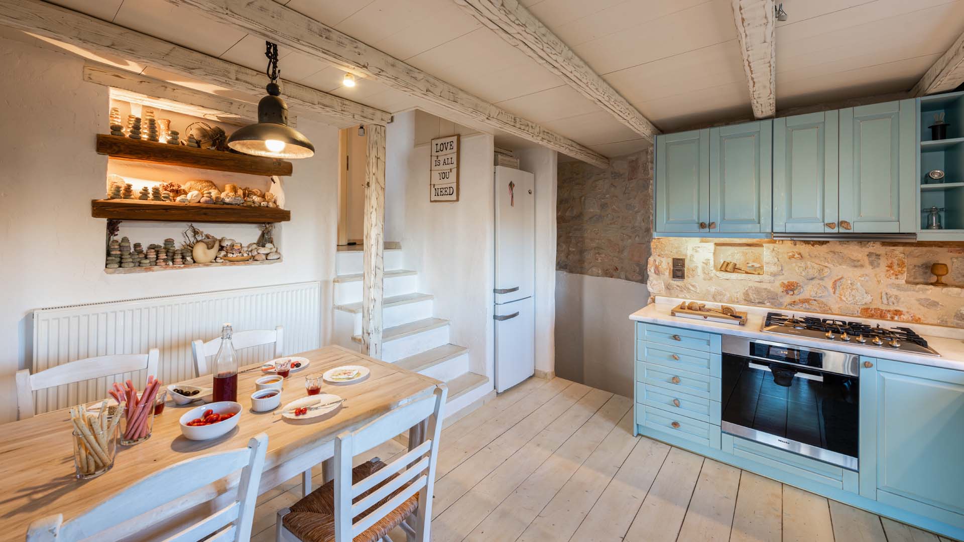 Blue villa grabs your attention from the first minute. Everything from the handmade coble handles in the kitchen to the unique bathrooms and built in beds, show love and attention both in detail and general planning, giving a warm welcoming feeling.