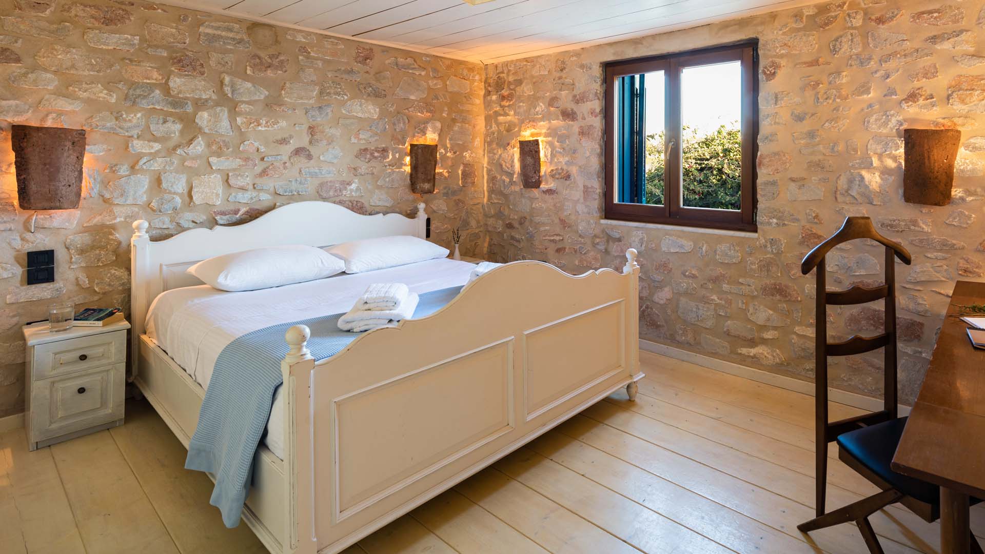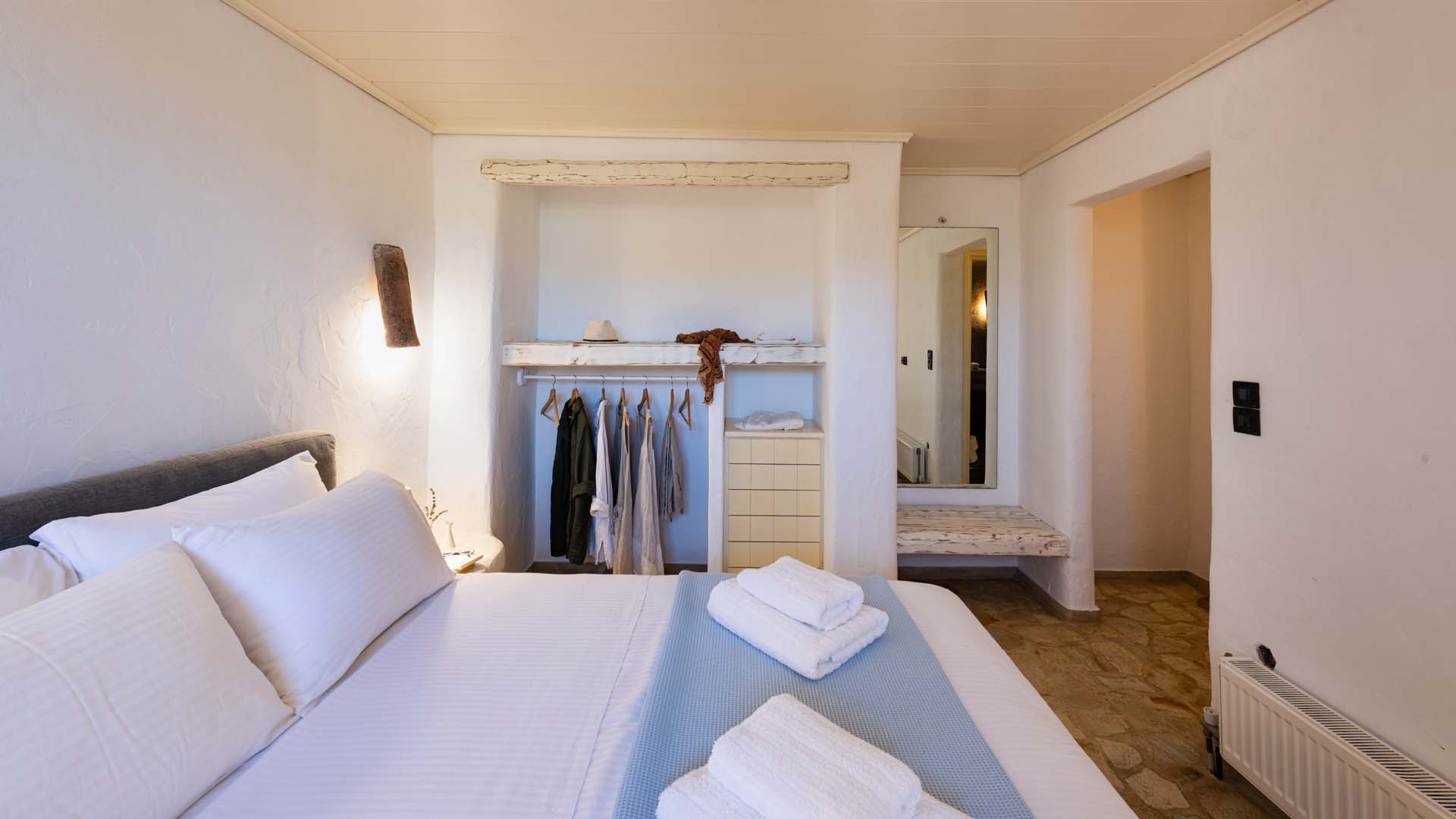 The spacious master bedroom features a king size bed (1,70x 2,10m), has an extra bed, walking closet and a private two person